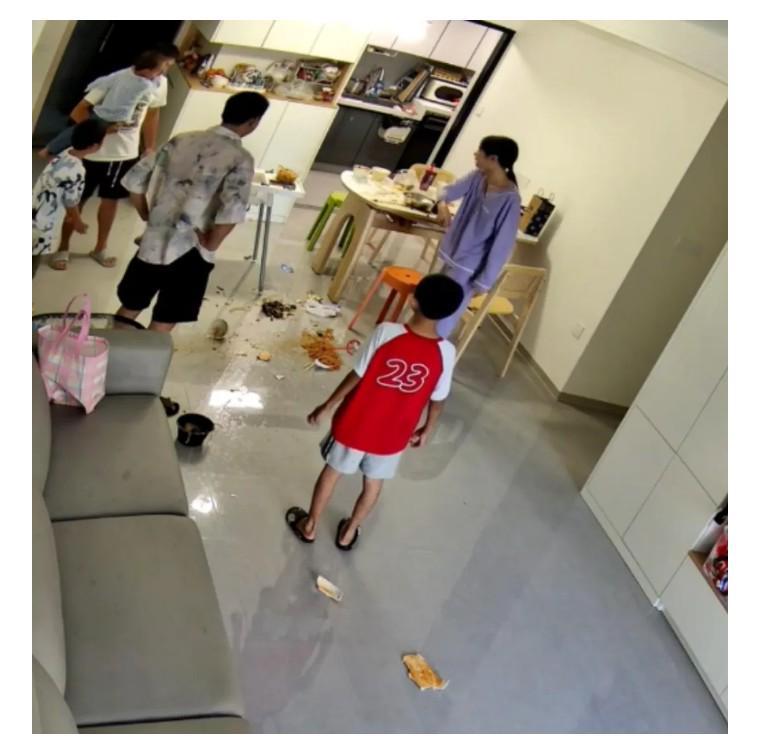 结果我们在监控的视频看到,女子把桌子掀翻之后,被她丈夫起身推到了房间。